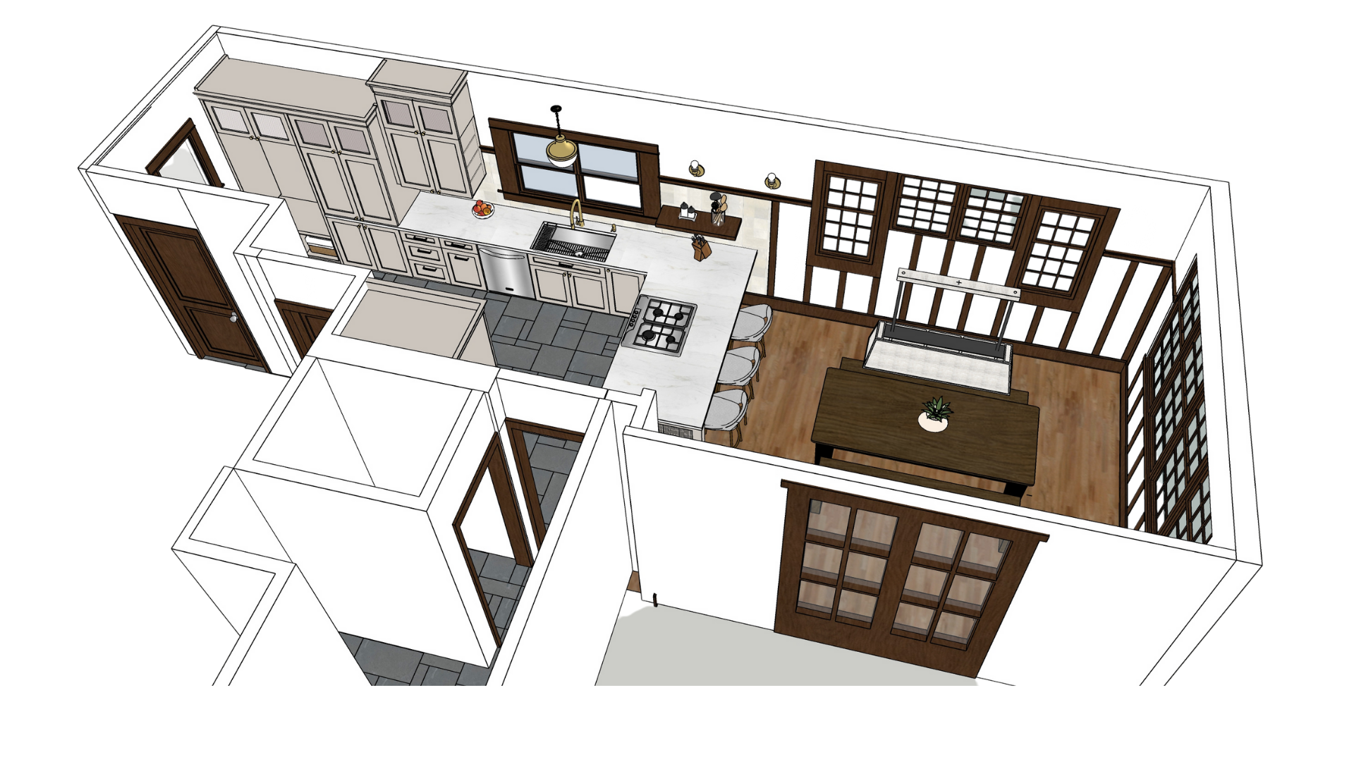 This project was completely remote. We worked with the home owner to specify and source finishes and provided drawings for their local Chicago contractor.